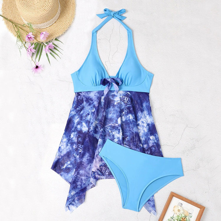 Women's Swimwear Swimdresses Sexy Silk Edge Printed Split Skirt Bikini Swimsuit